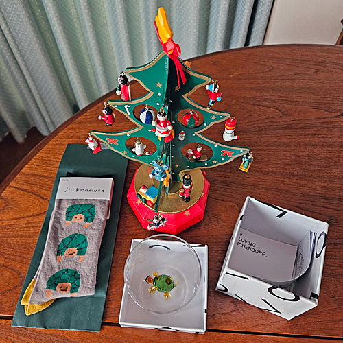 つれあいにカメのグラスと靴下をもらいました。