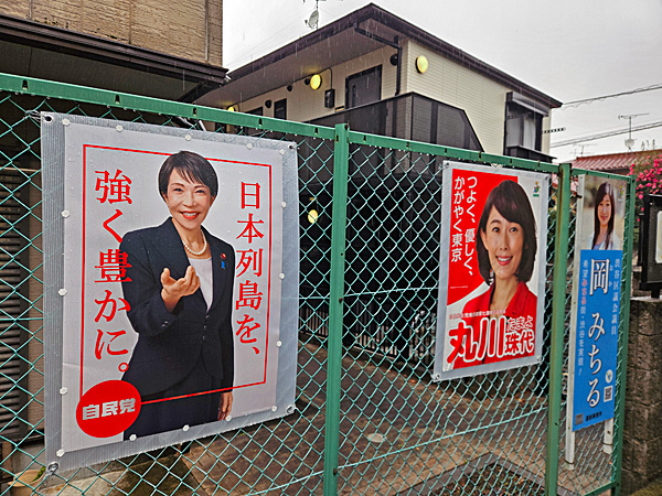 自民党本部前を通ったら、高市早苗のポスター(赤&白)がありました。