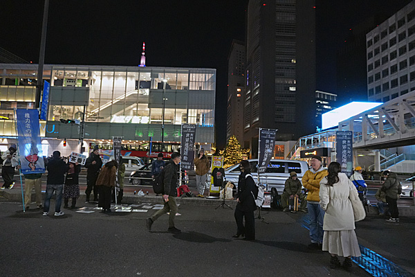 14時30分頃と17時30分頃に2度通りましたが、「断固反対!!世界連邦運動」の幟を立ててスタンディングしてる人たちがいました。