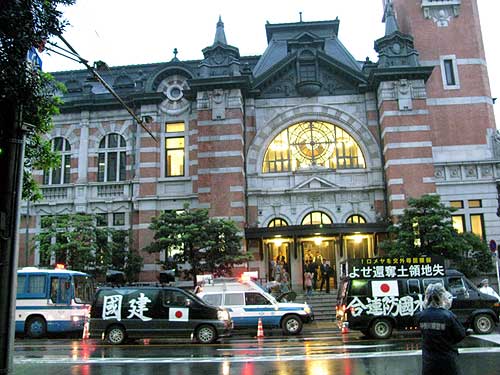 監督なかなか現れず、右翼の皆さん、いらつく