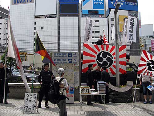 街宣車の上から、おまえら北朝鮮に帰れ、などと怒鳴ってました。
