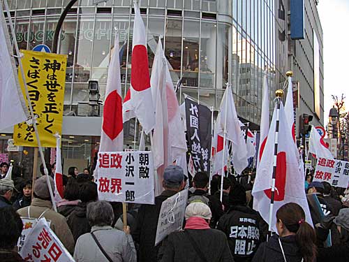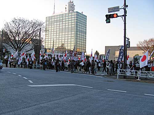 革非同・黒い旅団合同「12・23クリスマス粉砕デモ」への道すがら日の丸な方たちに遭遇しました。