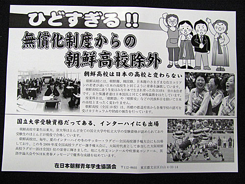 日本政府は「高校無償化」をネタにした在日朝鮮人への弾圧をやめろ