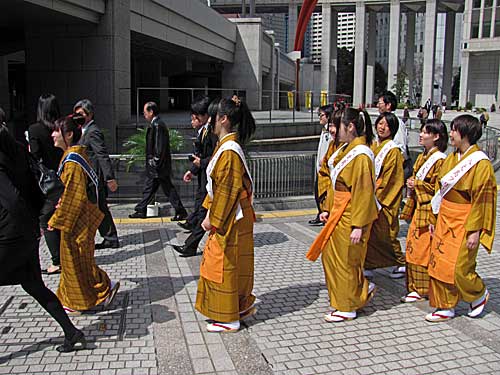 情宣の間、都民広場の方で太鼓のような音がしてたので、何だろう、と思い、行ってみたら、写真のような美しい方がたが。
