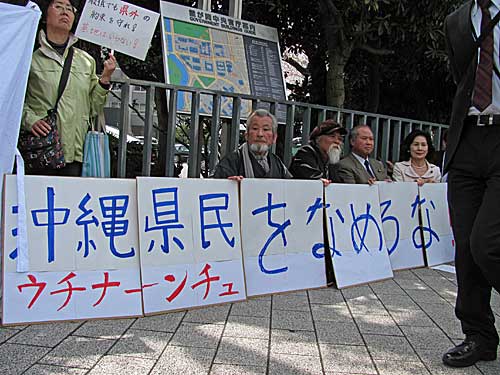 安里英子(基地・軍隊を許さない行動する女たちの会) 安次富浩(名護市民) 金城 実(彫刻家) 知花昌一(読谷村議、反戦地主) 知花盛康(読谷村の農業従事者) 真喜志好一(建築家、「琉球国・建設親方」)