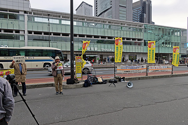 新宿駅南口と東口と二手に分かれて家庭連合の人たちが街宣してました。