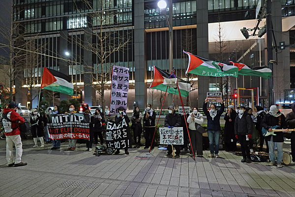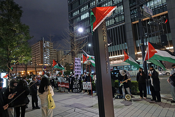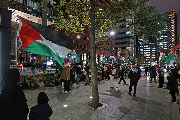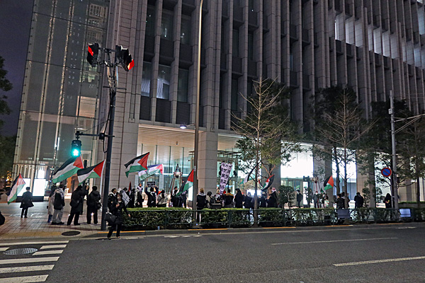 暴力的ではありませんでしたが、空中でパレスティナ旗と攻防してました。