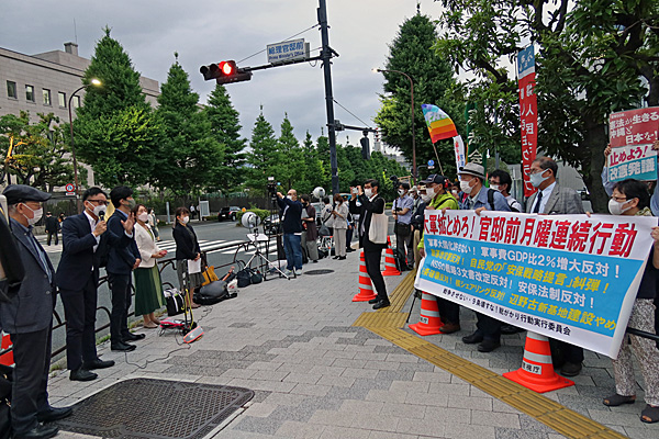 首相官邸前に親トランプ・反中国・反ワクチンの人たちがいました。
