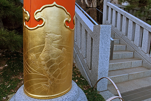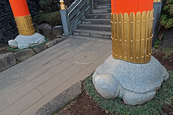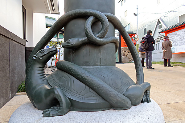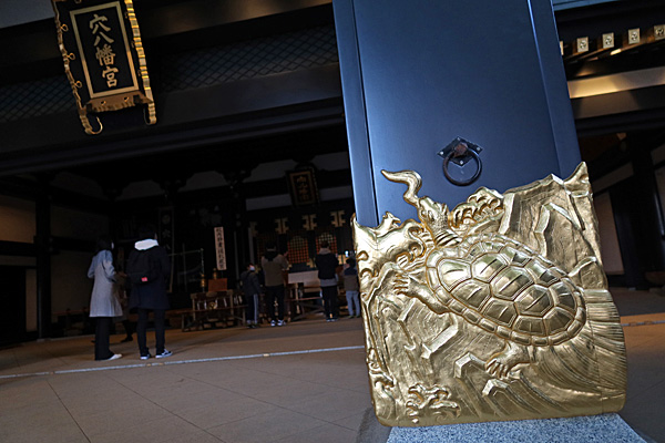 年末だったか年明けだったか誰かのSNSの記事で穴八幡宮の鳥居の柱脚部(亀腹?)に亀がいることを初めて知りました。