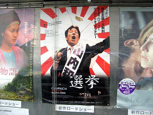 小泉大好きの一市民・山内和彦(40歳)が川崎市議会議員補欠選挙に立候補したときのドキュメンタリーだけど、自民党、よくここまで撮影を許可した、というくらい選挙運動の内情をさらけ出してて、なかなか笑える作品でした。