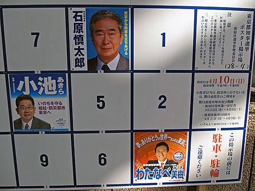 石原慎太郎候補は4番だから、入れるとたぶん死票になると思います。