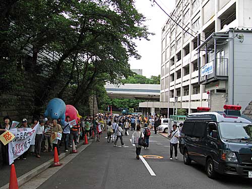 国会正門前を通って移動