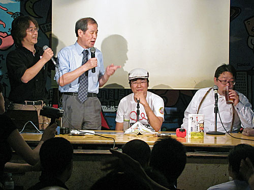 一部は当初より場外乱闘寸前で、右翼の内ゲバ、面白すぎー、と不謹慎なこと思って見てたのですが、二部、三部と段々とテンション下がって、最後は、やっぱり天皇陛下は大事だろ、みたいな感じで終わってしまい、結局、なんだかなー、という思いだけが残ったイヴェントでした。