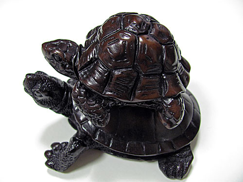 この後、歌舞伎町でシンガポールの友人に会ったら、お土産にカメを2匹くれました。