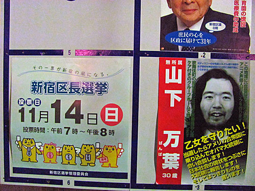 新宿区長選挙、なんとかぎりぎり思い出して、夜7時半頃、投票してきました。
