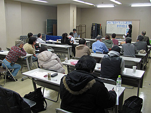夜、新宿区立元気館にて「エチオピア難民ネザネットさん難民認定裁判勝利報告会」に参加しました。