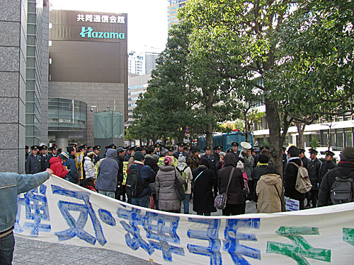 僕は2時半から3時半まで現場にいましたが、警察に阻止され、代表者数名すら大使館に一歩も近づけませんでした。