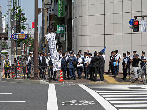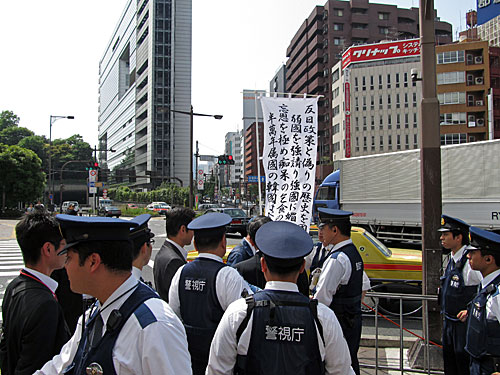 道すがら、韓国大使館近くの交差点で戦闘服(?)を着たお兄さんが、警察官多数に囲まれ、「(だったら)礼状もってこい!」とか叫んでました。