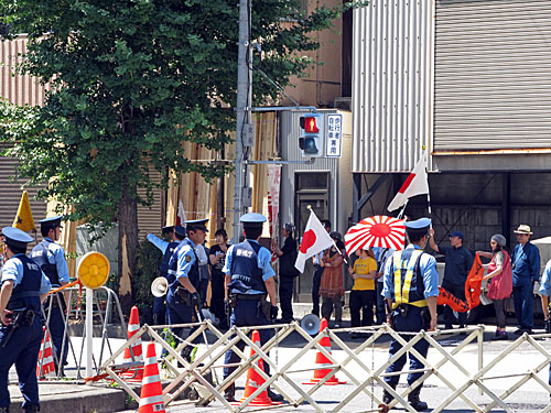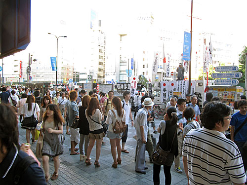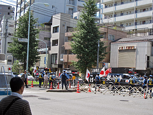 ↓反天連集会を休憩時間に抜けて、池袋に向かったら、また同じ右翼グループが駅前で街宣してました。