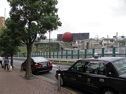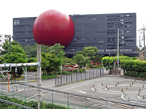 仕方なく予定を変えて、昨日、友人から教えてもらった、巨大な立体日の丸が自動車教習所の建物から突き出てるというアート(?)の観光に向かいました。