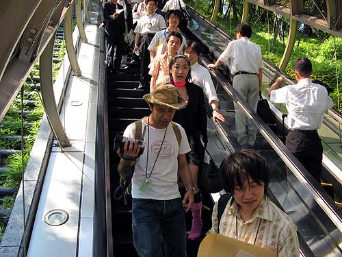 「陳情」を終えて、エスカレーターを降りていく市民有志の皆さん。