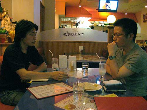 ↓新宿区某インド料理店にて打ち合わせ中のおふたりです。