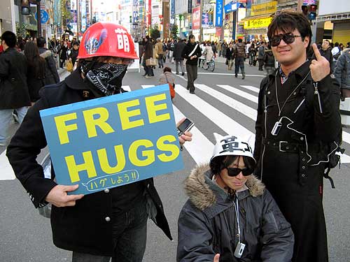 http://d.hatena.ne.jp/furukatsu/赤ヘル氏の抱えてる「FREE HUGS」の看板は、いつか僕が新宿で出会って写真を撮らせてもらった女の子のもののようです。