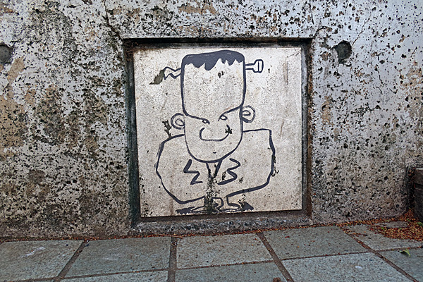 今日初めて気がついたのですが、新宿東口の植栽の足下に目立たない形でプレートが10枚くらい嵌めてあって、ほとんどは植物など無難なモティーフなのですが、なぜかこの1枚だけがこんな絵柄でした。