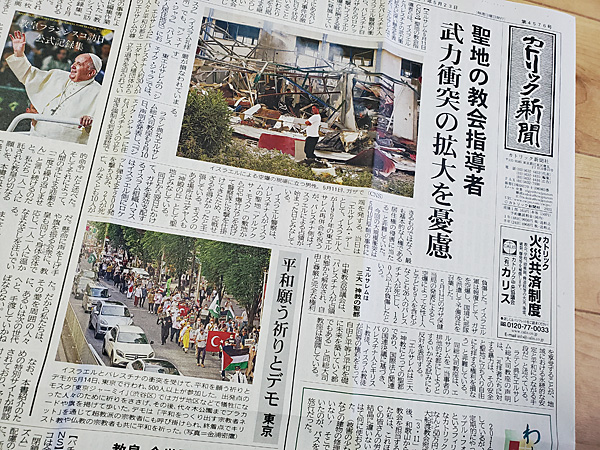第1面に僕の撮った先週金曜のパレスティナ連帯デモの写真が載ってます。