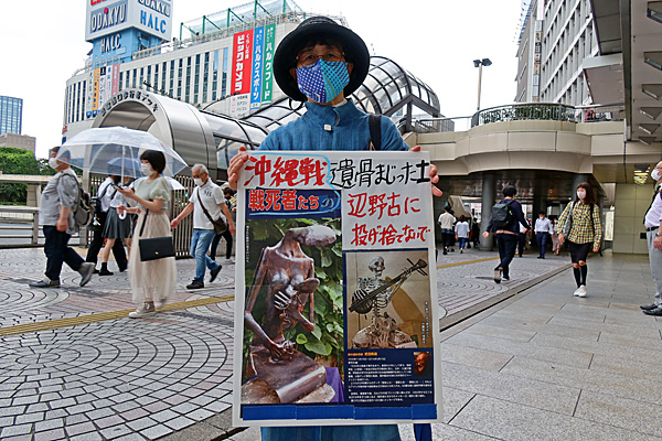沖縄でハンストをつづける具志堅隆松さんに連帯しての新宿西口サイレント・スタンディングです。