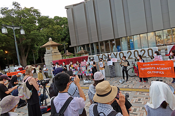 原宿・神宮橋、アジア女性資料センター呼びかけによるオリンピックに反対するフェミニスト・スタンディング&アピールです。