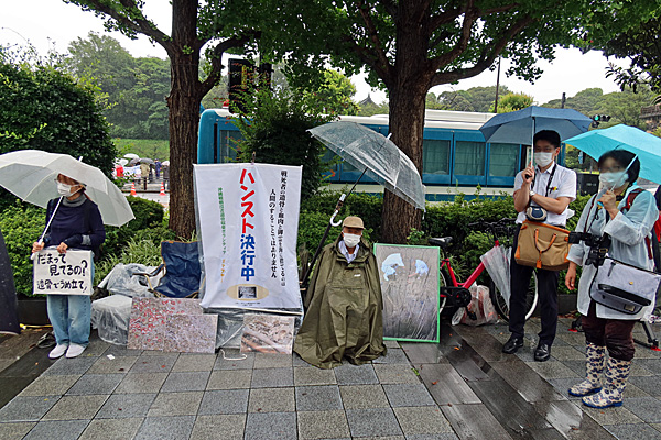今日、正午前に行ってみたら、保守派の情宣も例年より人数もだいぶ少なく静かで、その中で風景に溶け込んでました。