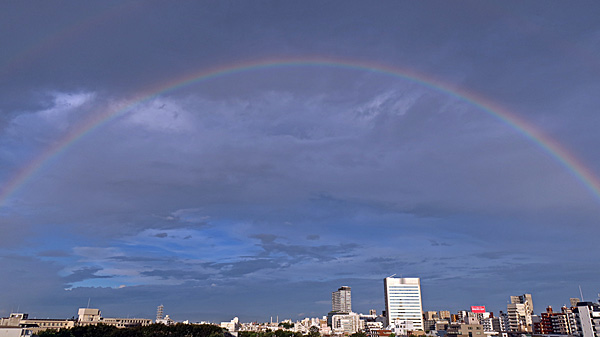 朝起きたら向かいのビルの上に虹の赤ちゃんが見えました。