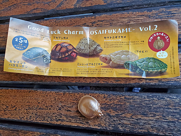 写真ではわかりにくいと思いますが、よく見ると、ボトルの4面に、茶文字、亀、招き猫、達磨の絵が描かれてます。