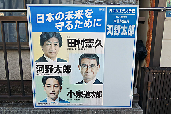 2時間近く滞在してましたが、写真の河野太郎の薄ぼけたポスター数枚の他には公明党を数枚しか見ませんでした。