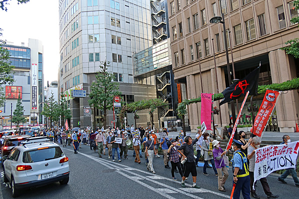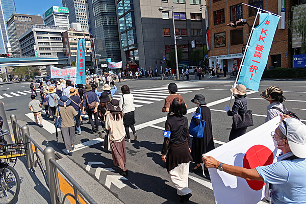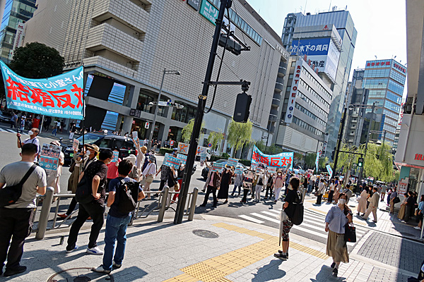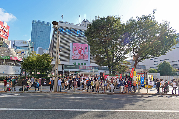 出発地点のアルタ前広場ではすぐ隣りに反マスク・反ワクチン・カルトの皆さんがいました。うへー。