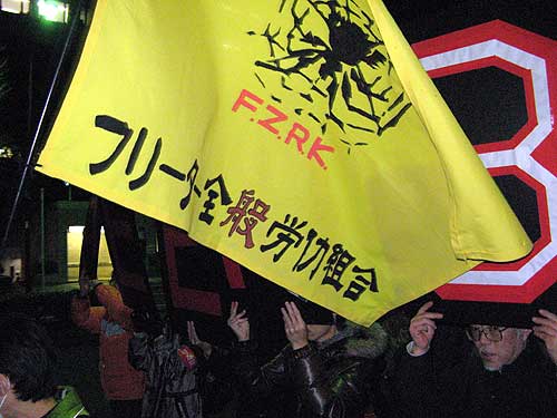 デモの間中、フリーター労組の新旧の旗と黒/ピンク旗と「KEEP8」と全部入れて写真撮ろうと苦労したけど、なかなかうまくいかないね。