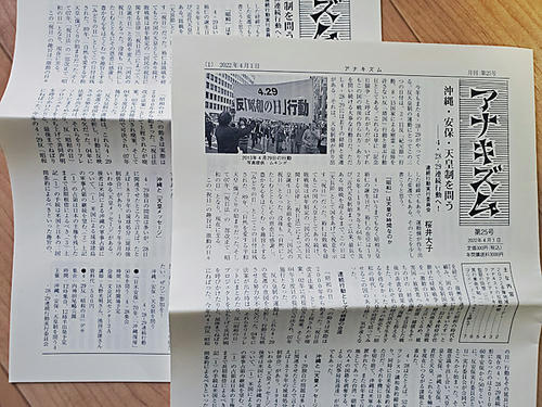 情報紙「アナキズム」第25号(4月1日発行)が届いてました。