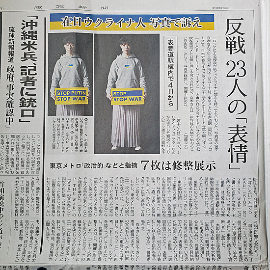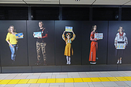 「STOP PUTIN」がただの「STOP」になってたり、23枚ある写真のうち7枚が「非政治化」させられたようです(by 東京メトロ)。