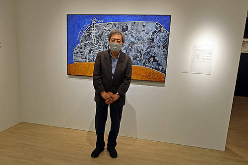 「百鬼蛮行―わたしのゲルニカー」の前で写真を撮らせていただきました。