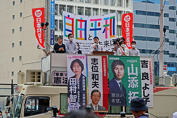 福島みずほ(比例)/秋葉忠利(比例)/村田しゅんいち(比例)/大椿ゆう子(比例)/服部良一(東京)