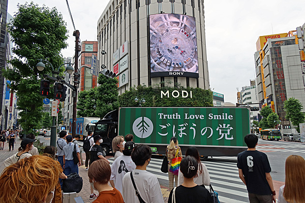 渋谷を「ごぼうの党」の宣伝カーが走ってました。