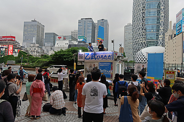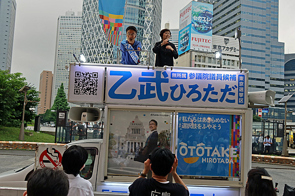 新宿西口で乙武ひろただ候補(東京選挙区)が街頭演説してました。