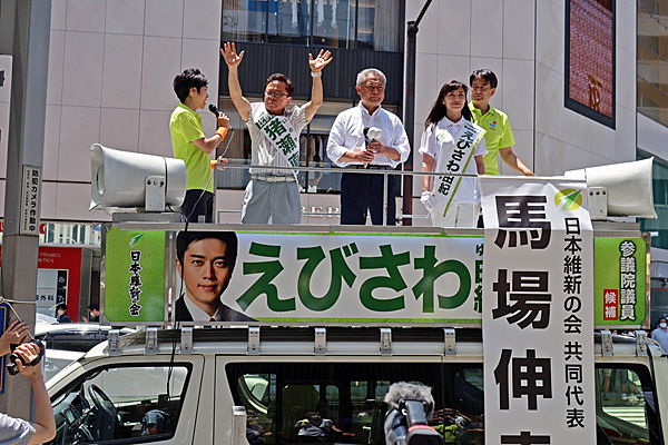 日本維新の会 えびさわ由紀(東京)、猪瀬直樹(比例)、馬場伸幸共同代表 @新宿三丁目交差点