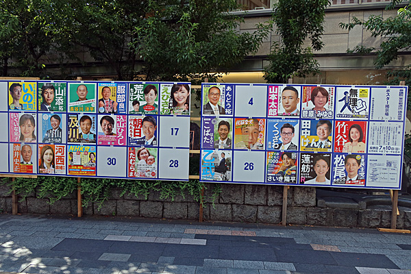 参院選 東京選挙区 ポスター掲示場(数寄屋橋交差点)