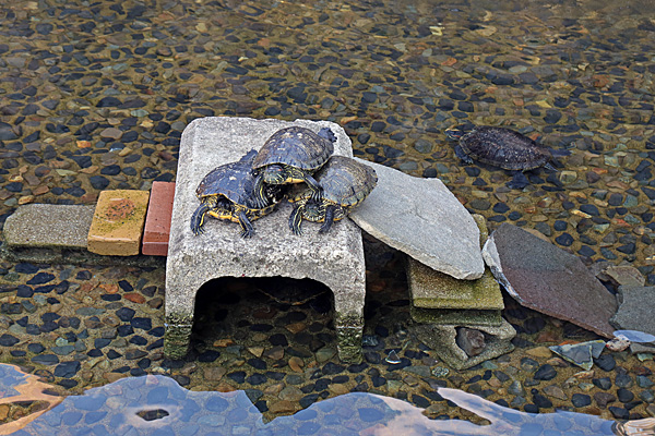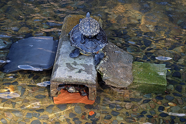 新宿中央公園「新宿白糸の滝」にカメちゃんたくさんいました。