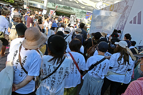「三浦春馬さんは自殺ではない」と書かれたお揃いのTシャツを着た女性たちもいました。