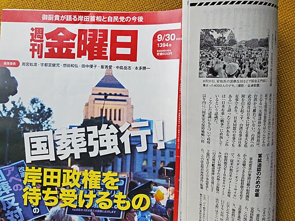 p.33の 高田健さんの連載記事(「STOP!9条改憲(96)」)に僕の撮った写真が使われてます。