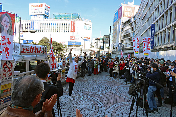 新宿駅西口、よだかれん候補の第一声です。