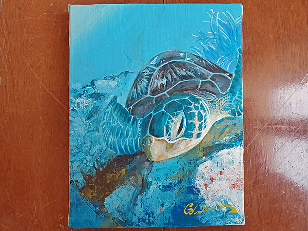 つれあいに三浦玉童さんのカメの絵をもらいました。
